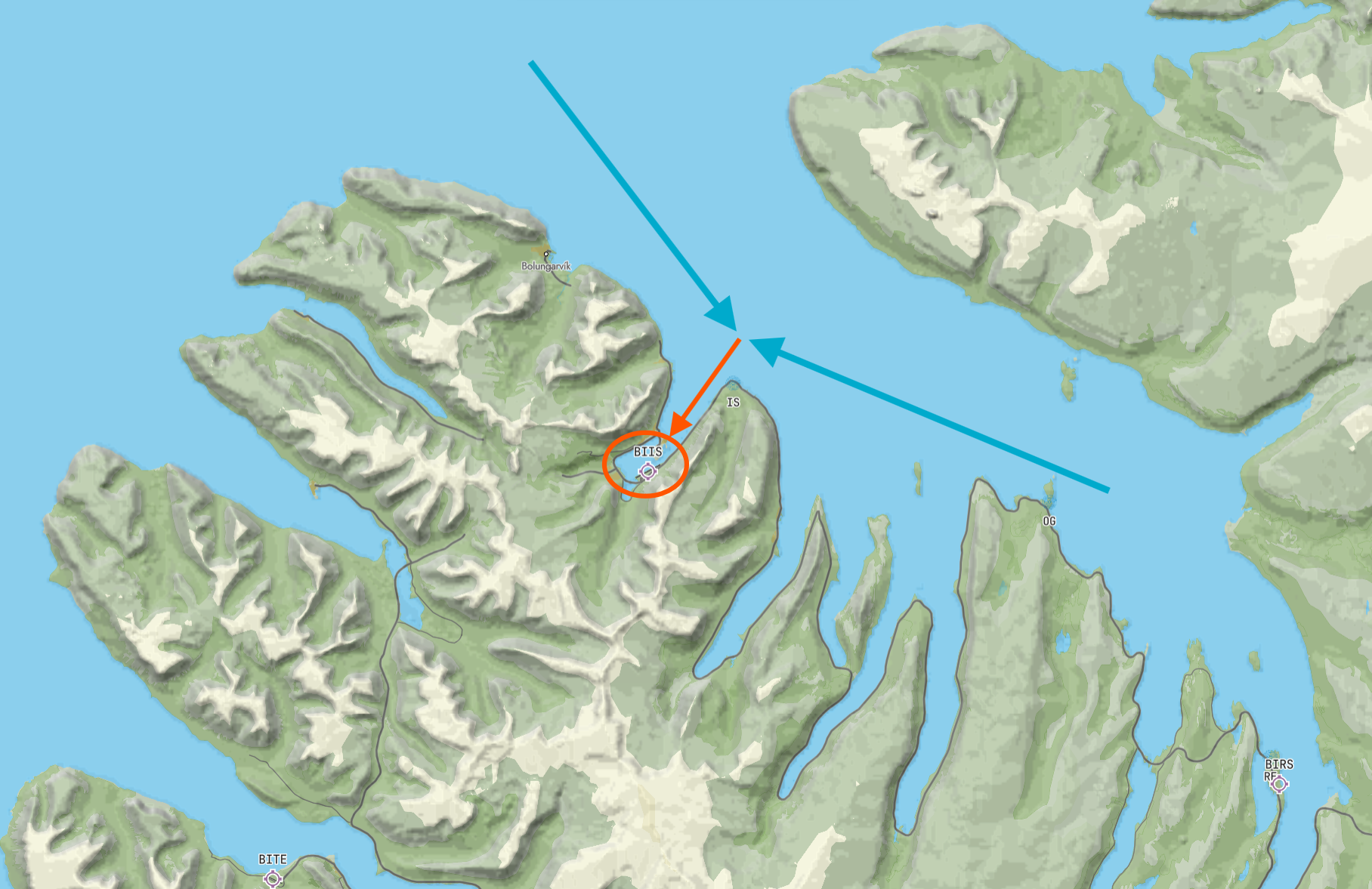 这 3 个仪表程序都没有对准跑道——甚至都只是引导到了机场所在的峡湾入口,之后就没有仪表引导和辅助了。