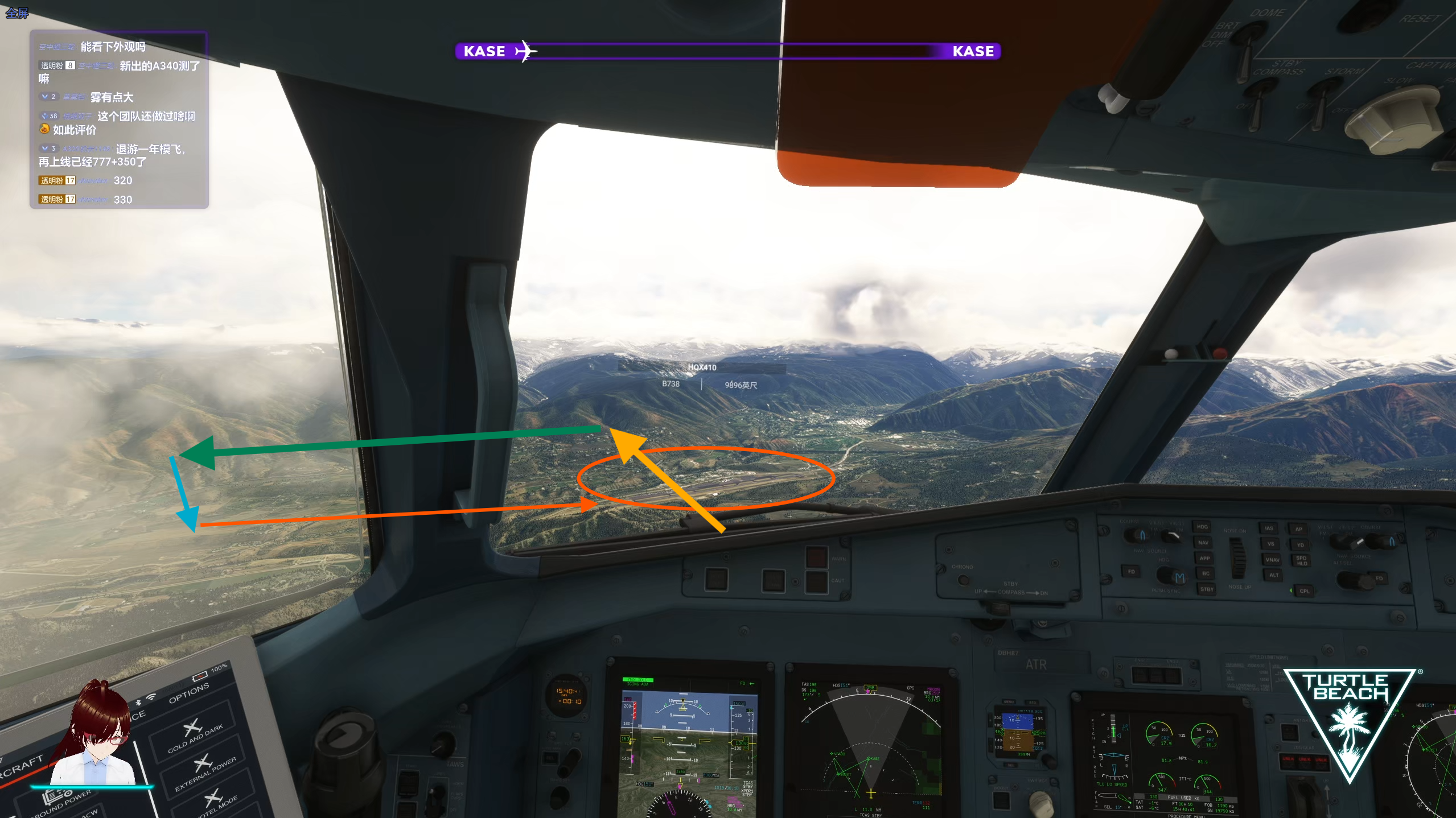 - 在河谷中飞行时,是看不到机场的,注意高度不要低于 10000ft;