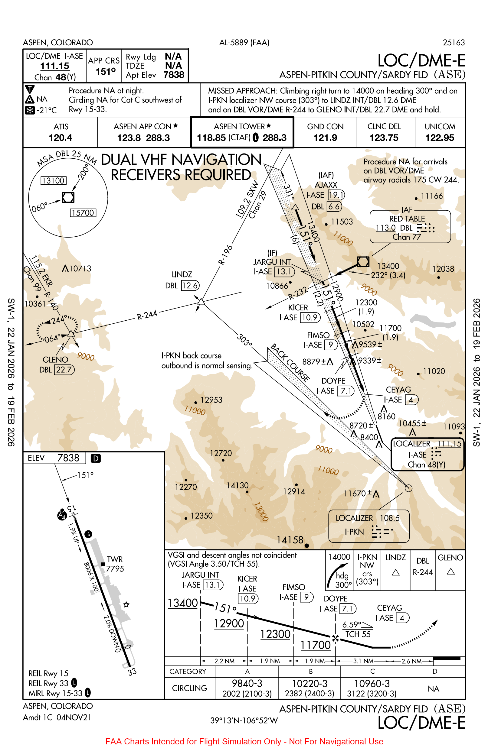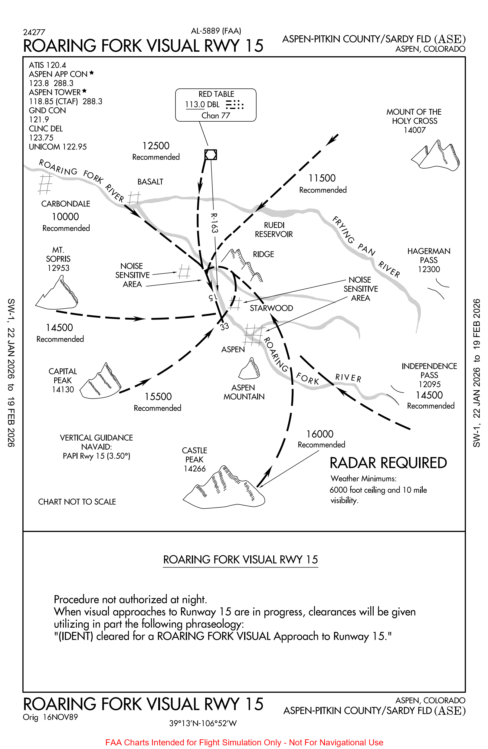 LOC/DME-E仪表程序- 从机场西北边沿咆哮叉河(Roaring Fork River)的目视线路