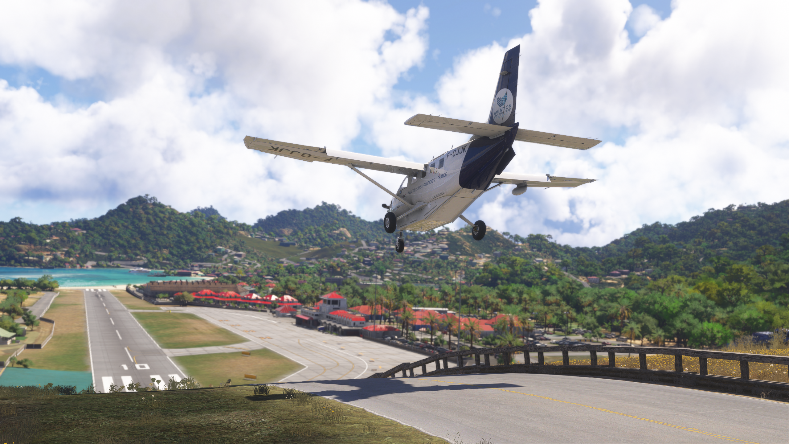 - 在建立目视后,开始下滑,目标为以 250ft 的高度通过跑道开端处的大斜坡,然后俯冲!