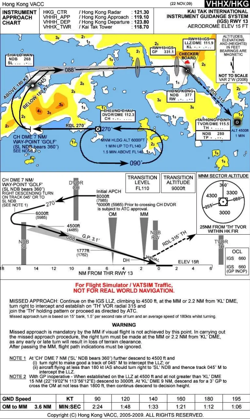 268 SLNDB 台,并继续向东北飞行,直至截获IGS信号,进入LOC航向道; - 根据指引,按 3.1° 下滑角向香港城区进近,直至确认到