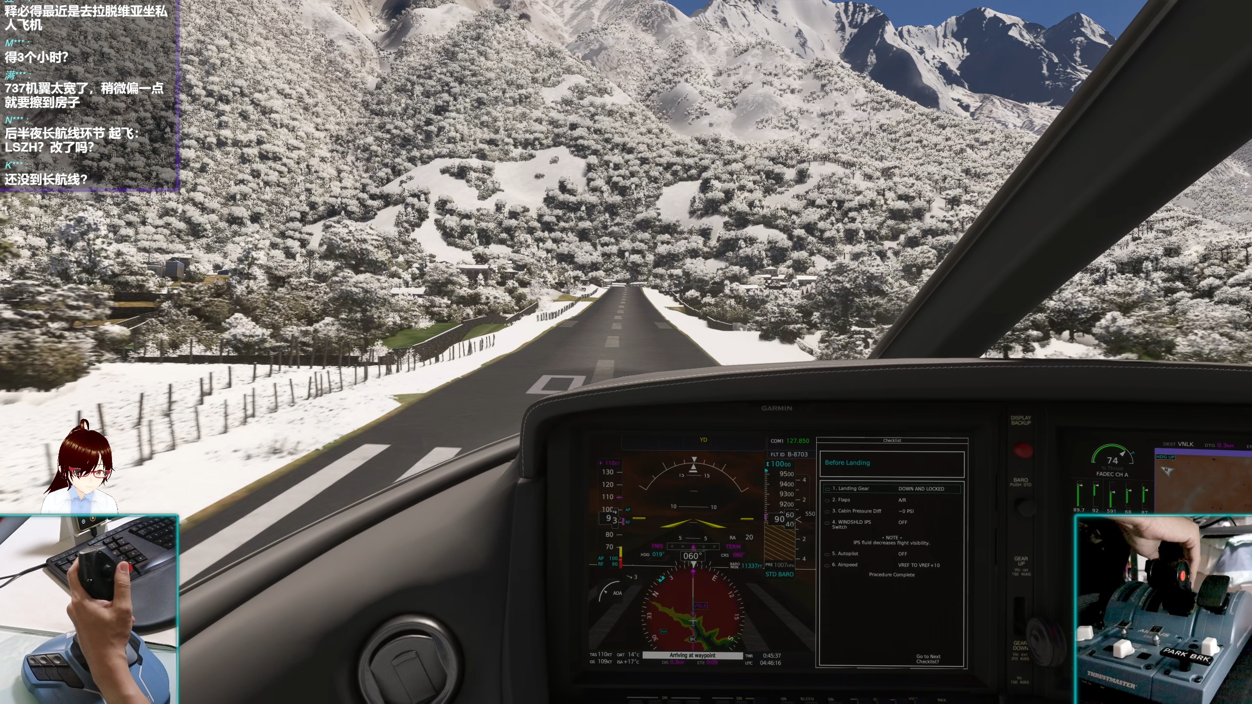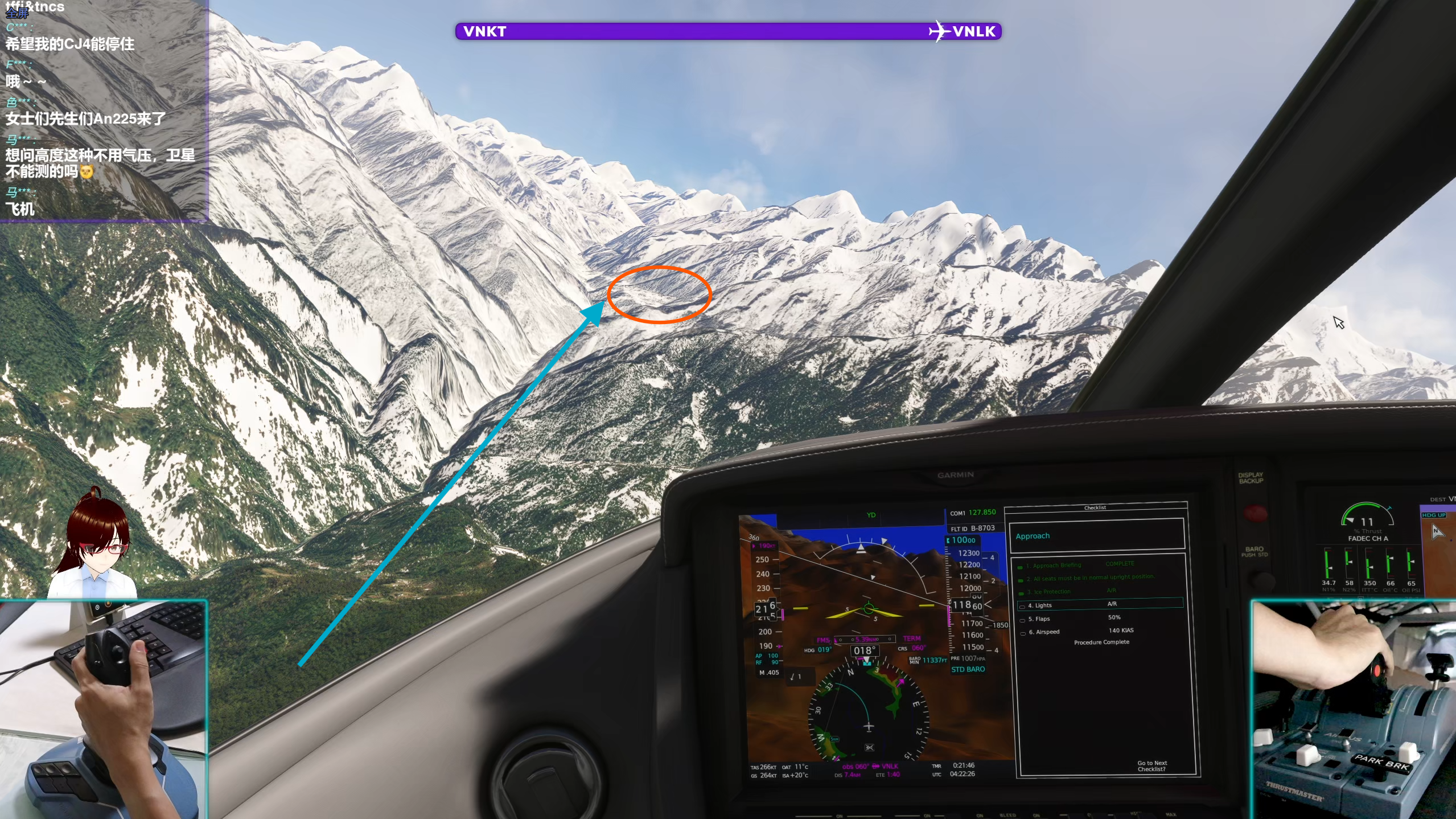 找到机场南边的山谷,之后进入山谷向北飞行,并逐渐下降至约 10000ft。