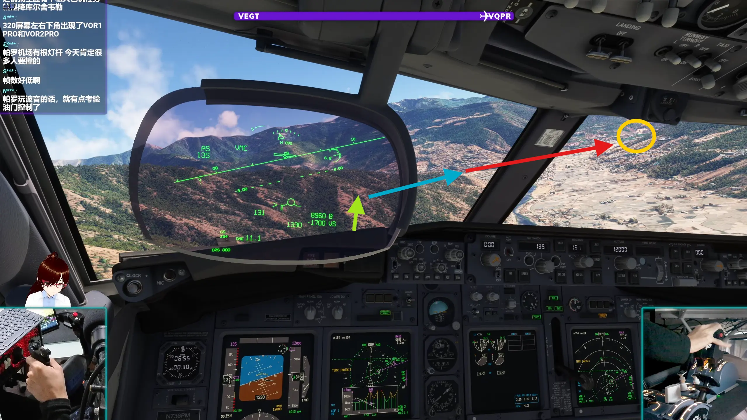 - 进入山谷后,贴着东北边(左手边)的山飞行,高度逐渐下降至 8200ft(蓝色线路末端);