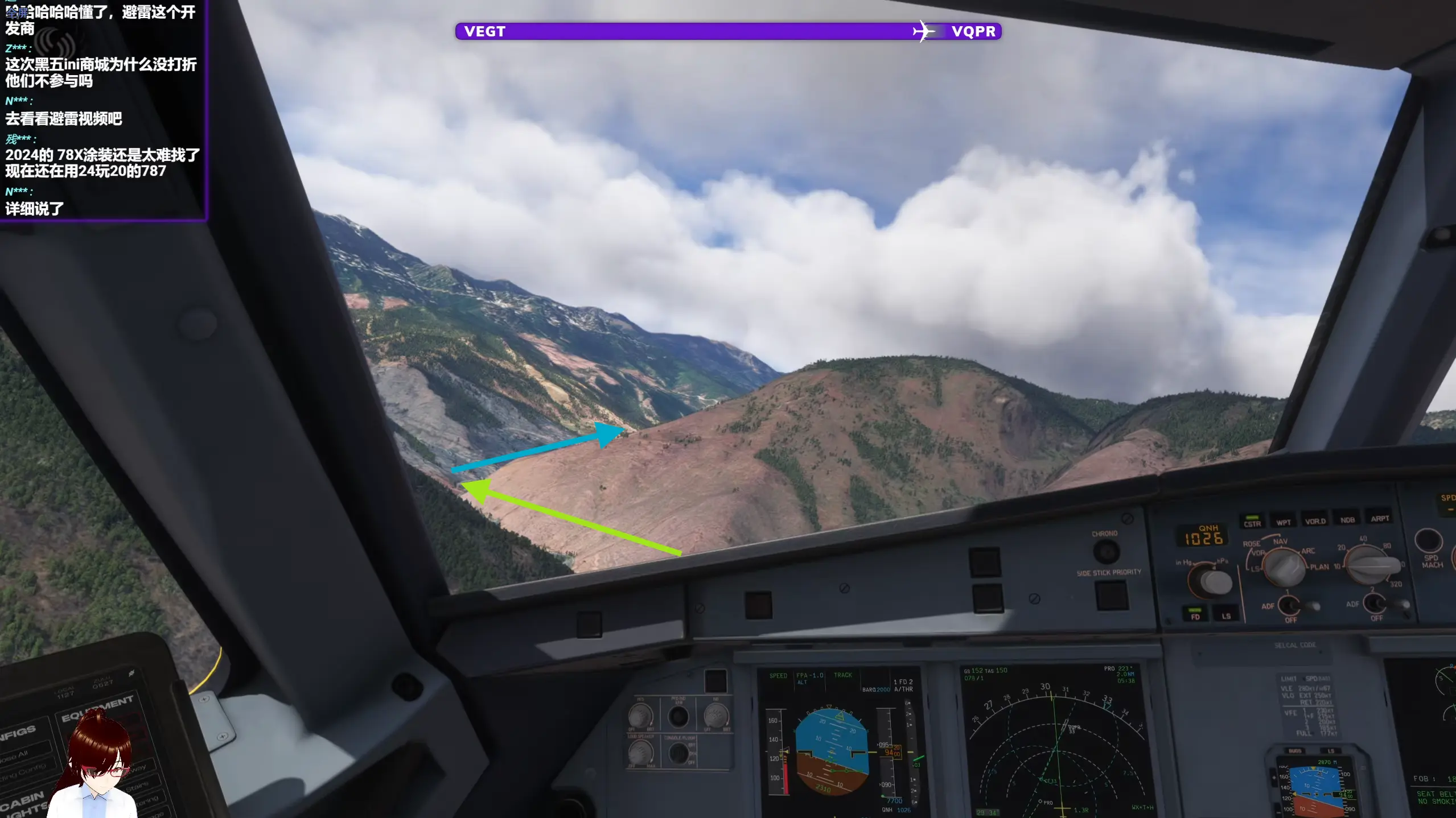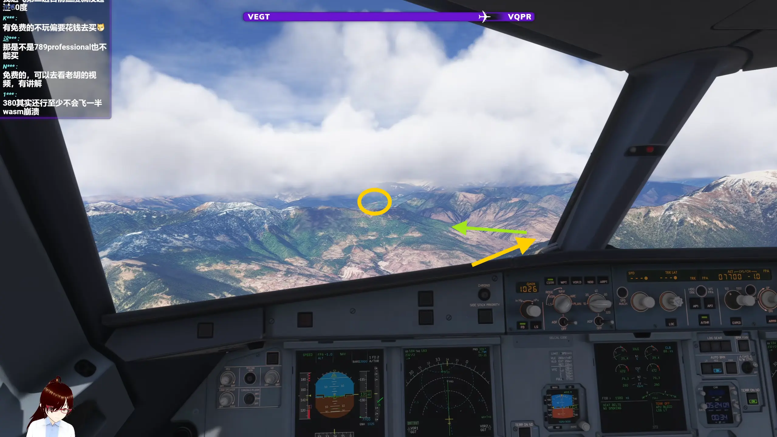 - 在进入山谷前,保持最低 10000ft(金色线路末端);
