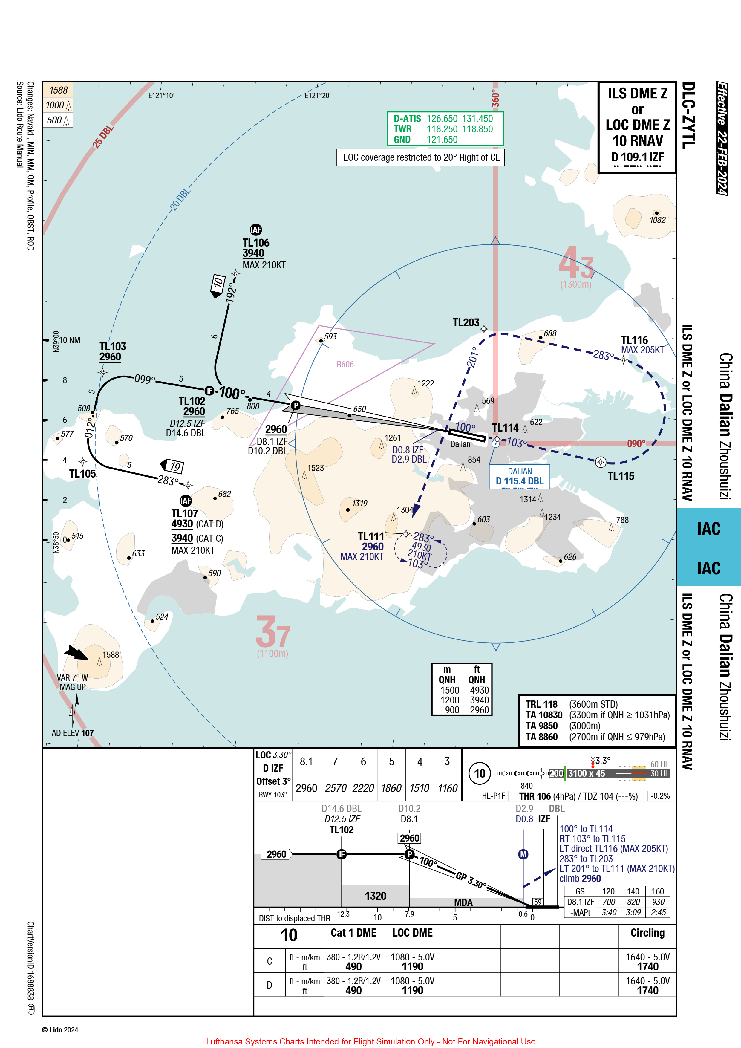 10 跑道 有完备的仪表进近程序,但都有航向道偏移(Localizer Offset):程序描述的第五边与跑道航向偏差了 3°。